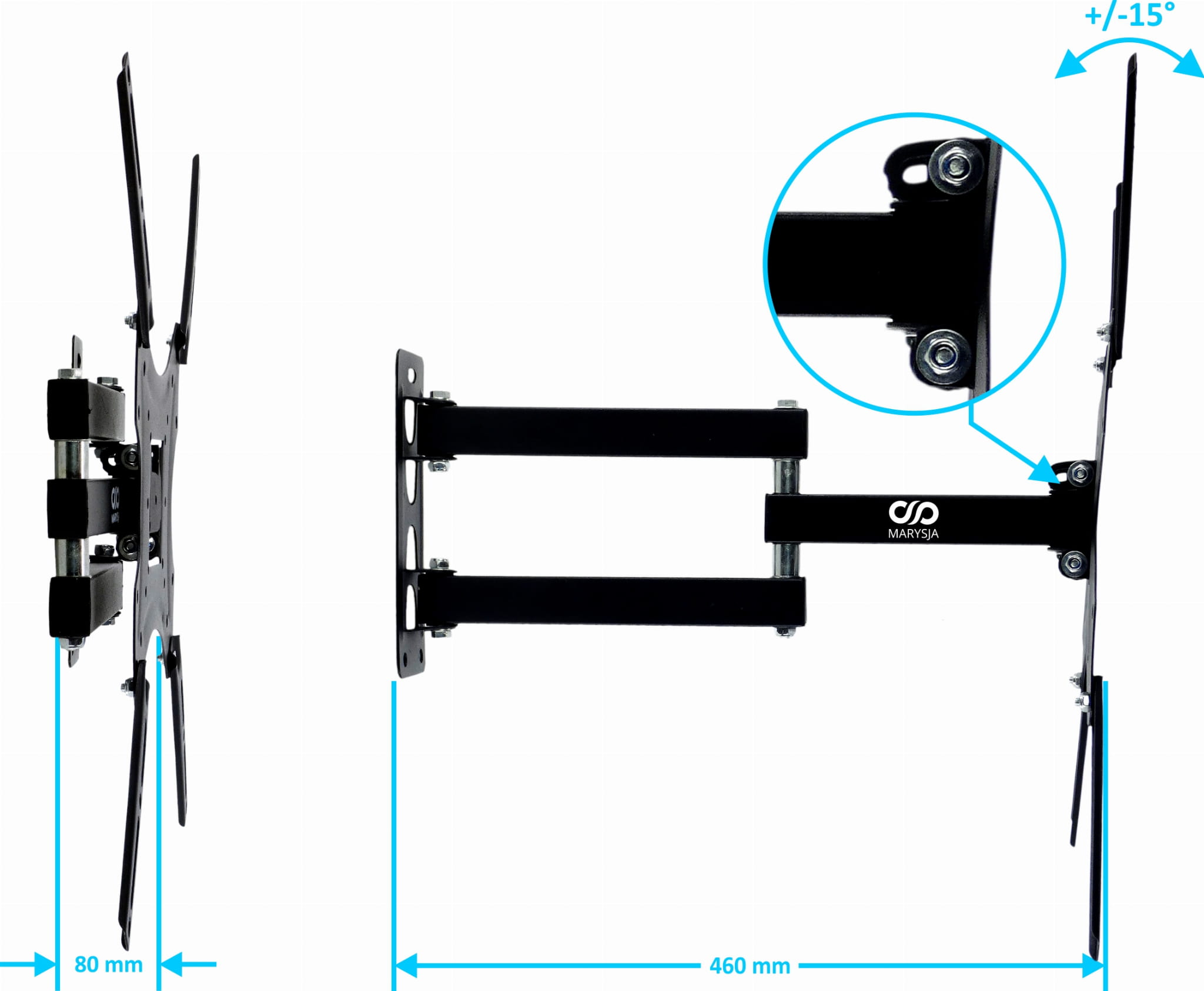 - Odległość telewizora od ściany 80 mm do 460 mm